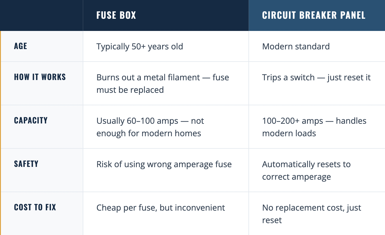 What is the difference between a fuse box and a breaker panel?
